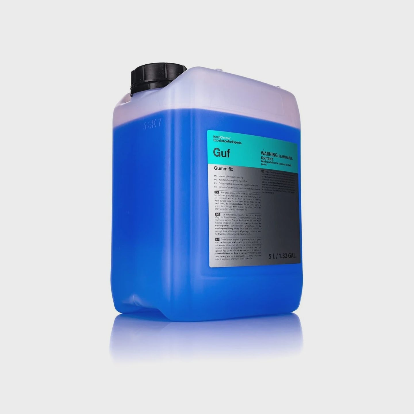 Koch Chemie Gummifix Guf is a solvent based 'dressing' designed to renew plastic weather resistant floor matts and floors where slip resistance is a factor. With a proper clean of these areas first, Gummifix restores the surface to a dark and rich look as it was to begin with only the slightest sheen left behind.